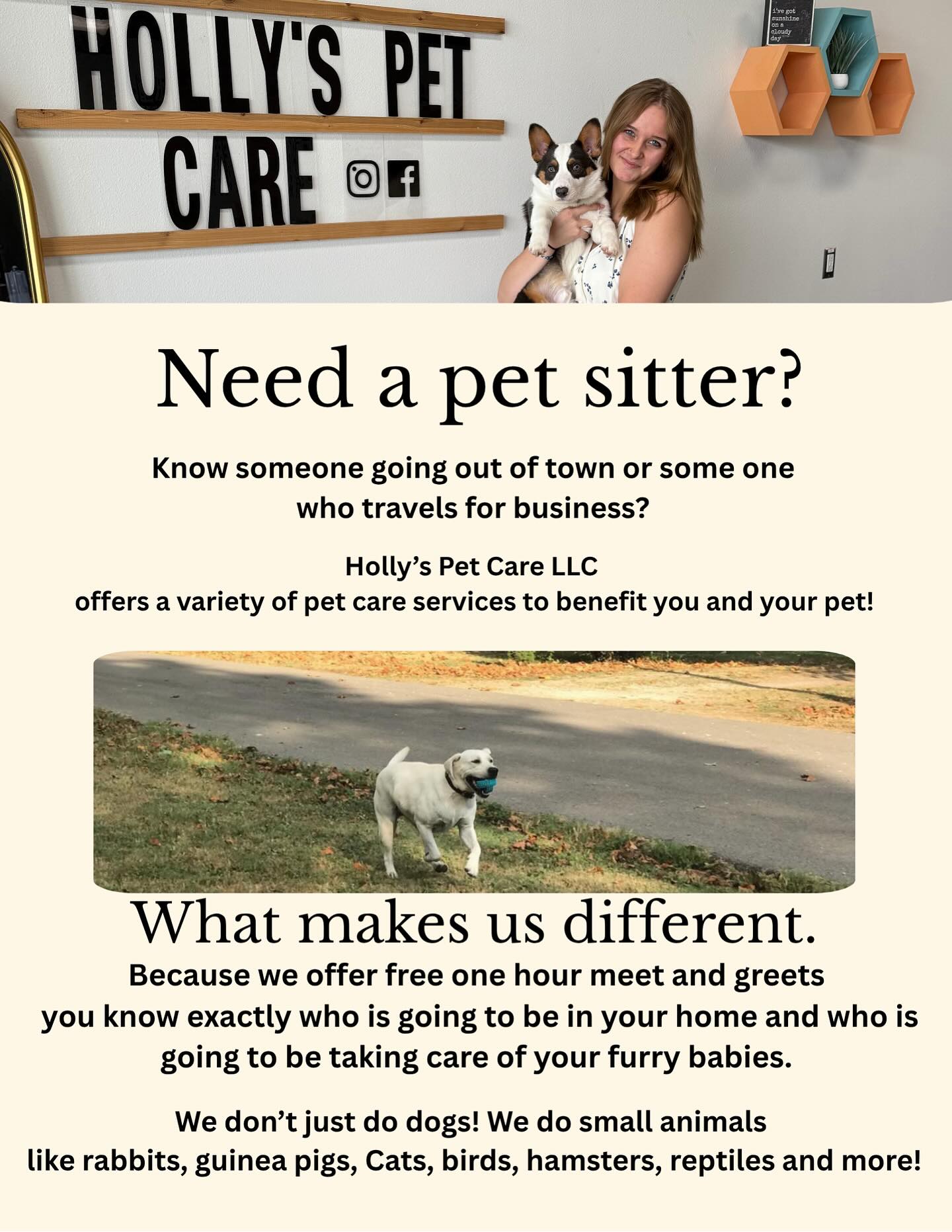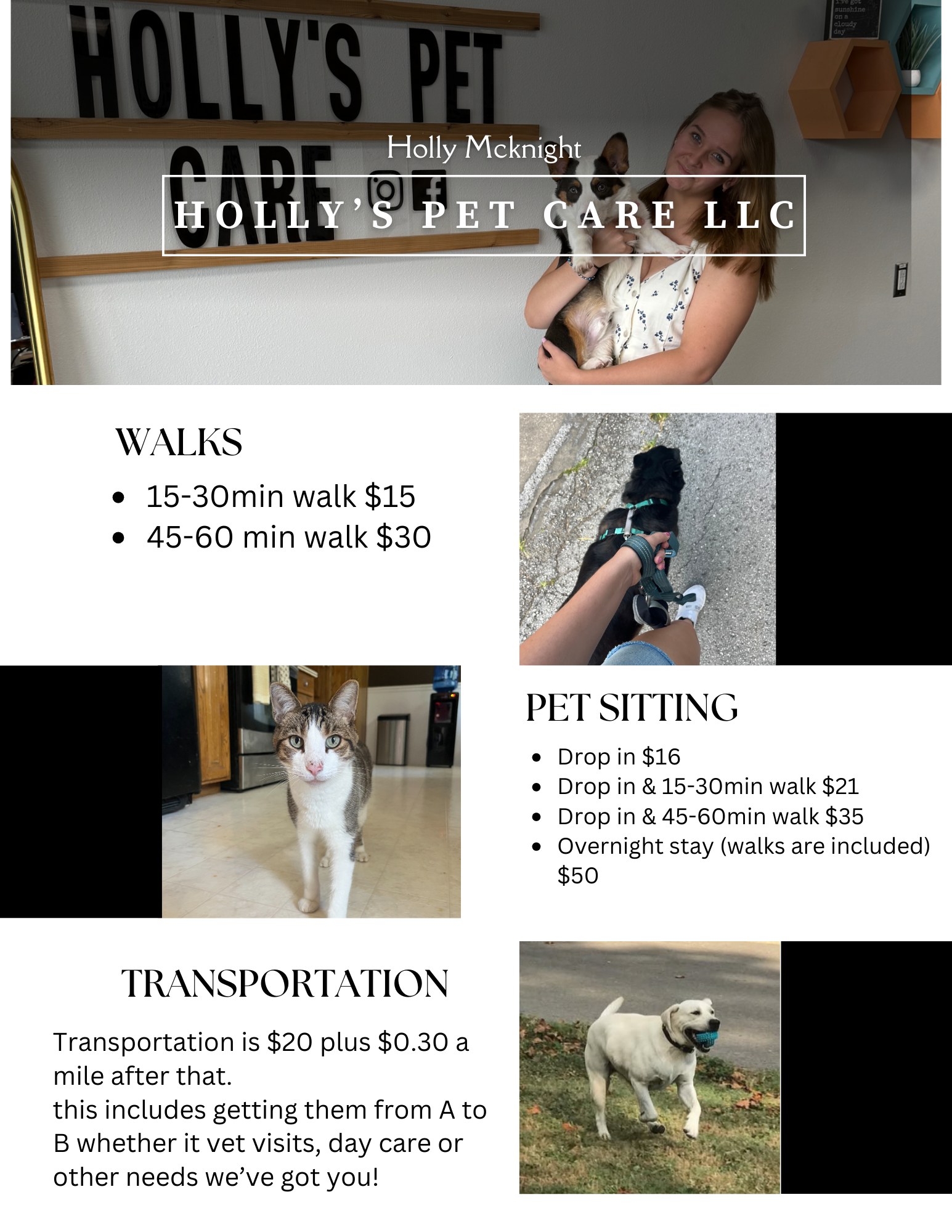 Welcome everyone! My name is Holly, the proud owner and operator of Holly’s Pet Care!