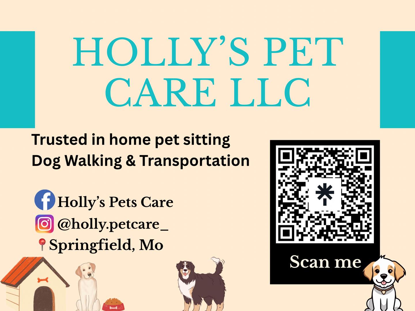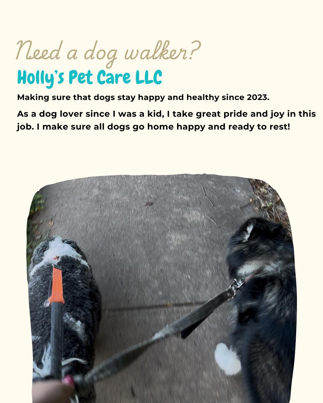 With my family’s support and love for dogs, They are helping built my business from the ground up, I want to make sure that every animal feels safe, loved, and understood while they’re in my care. My personal touch, attention to detail, and genuine love for animals make Holly’s Pet Care a service people trust—whether it’s for their beloved pets or their cherished homes!